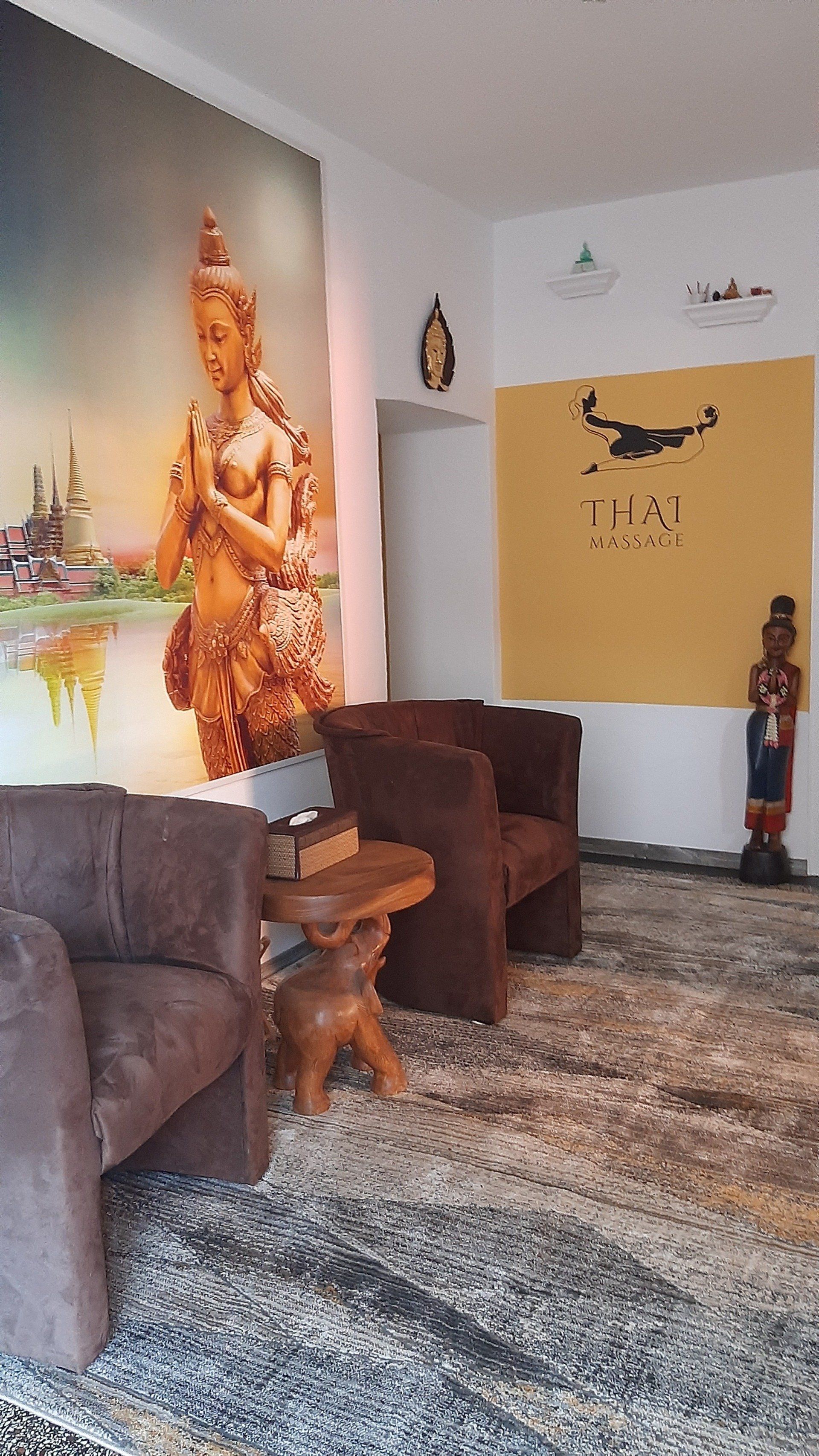 Druckpunktmassagen. Zehn ausgewählte Energie- linien, die nach ayurvedischer Lehre den Körper als energetisches Netz durchziehen, werden über sanfte Dehnung und mit rhythmischen Druck von Handballen, Daumen, Knien, Ellenbogen und Füßen bearbeitet. Die Thai-Massage findet bekleidet auf einer Bodenmatte statt.